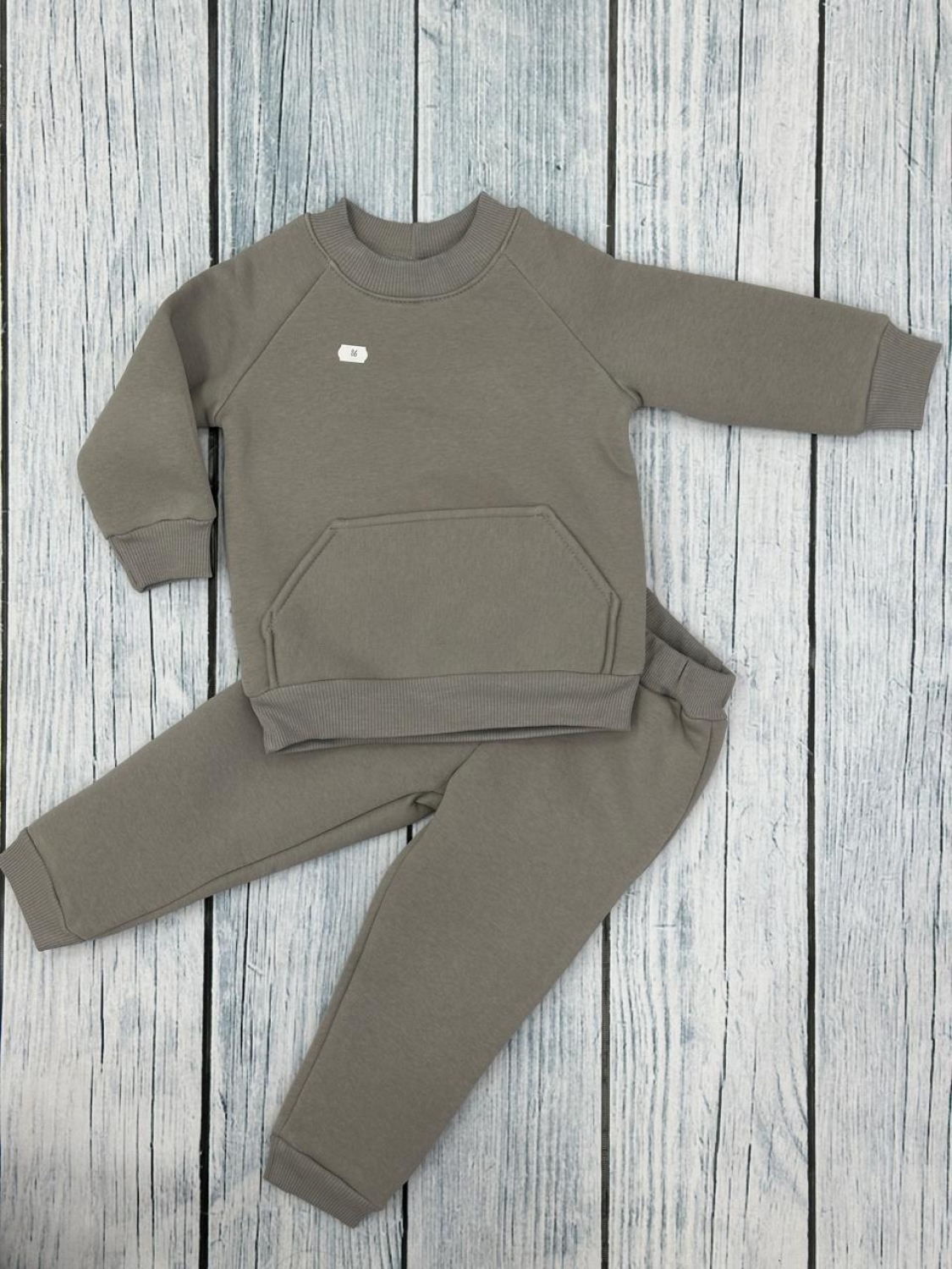 Купить оптом 297-СЕР. Свитшот + Штаны, хлопок 65%, 35% ПЭ, 3-х нитка (начес) серый ,80,86,92,98,104 в Серове